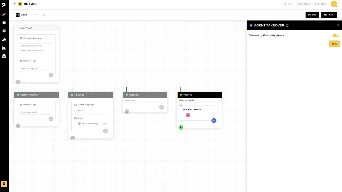 The chat session will automatically end on Proto's chatbot and transfer to the Bitrix24 Open Channel agents when the end user reach that conversation flow.